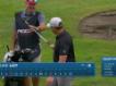 Description: Hideki Matsuyama gets some brutal luck as his approach shot bounces off the flag stick and rolls into the water.